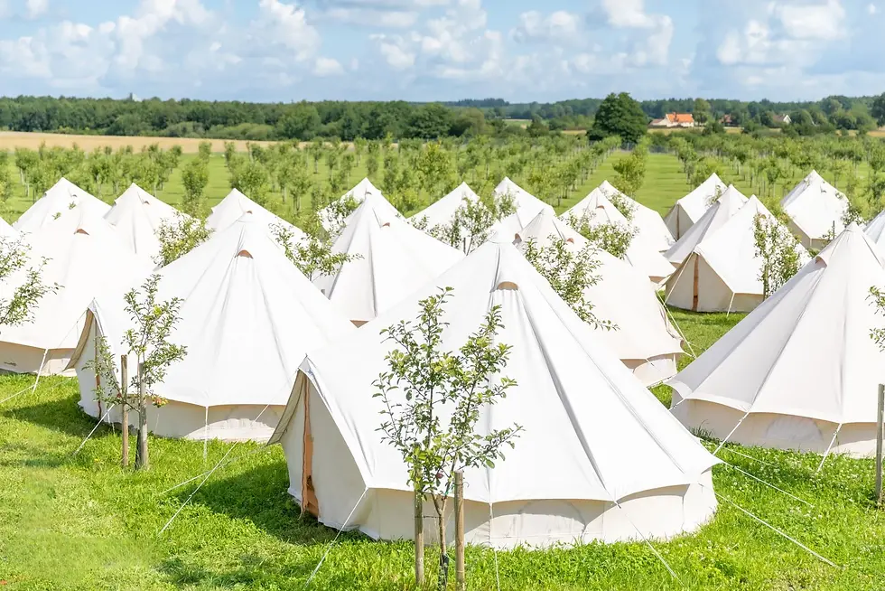 The tents are elevated on platforms, providing a comfortable stay and ensuring a restful retreat experience.